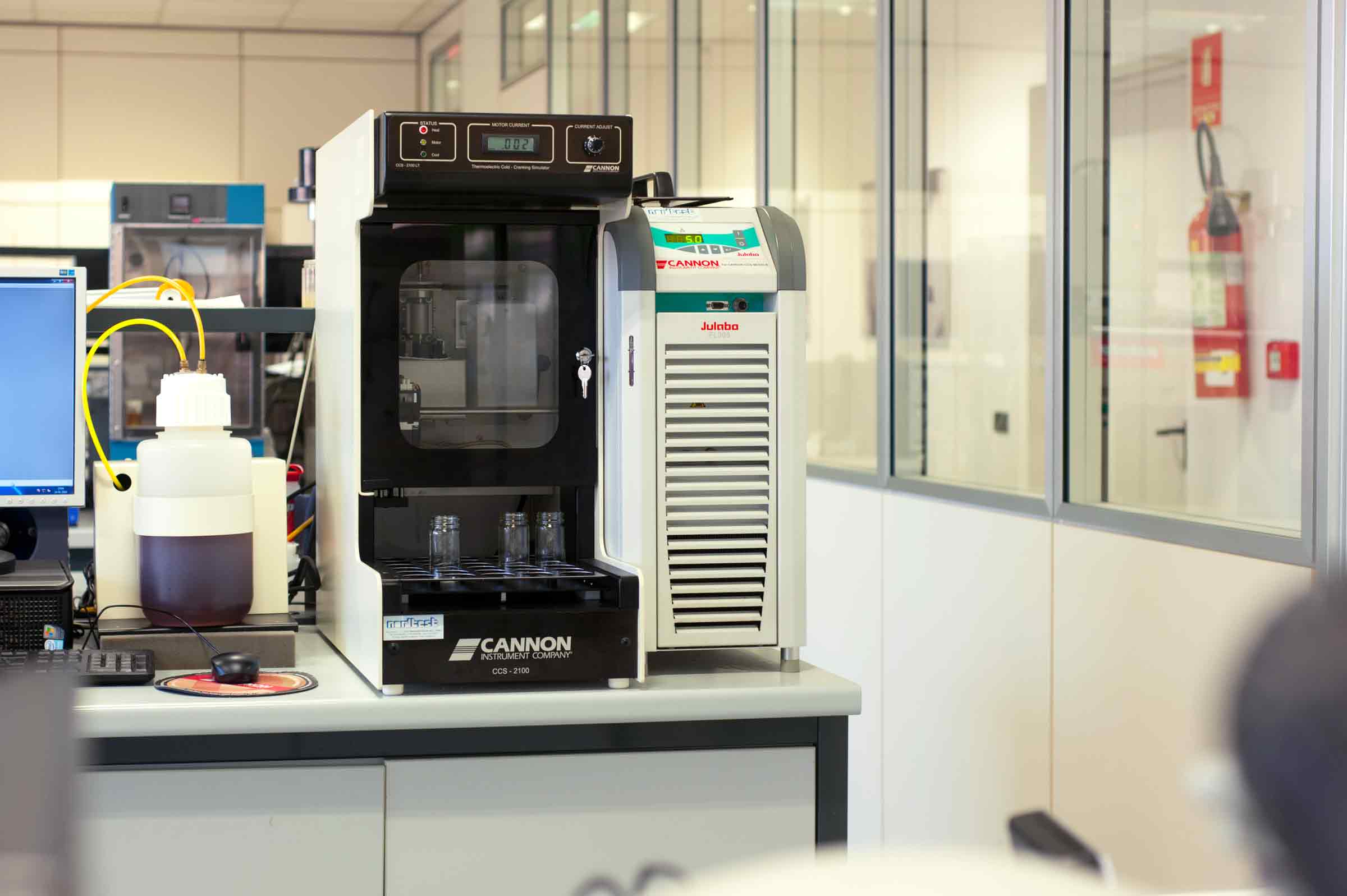 Cold Cranking Simulator (ASTM D5293) and Brookfield Viscometer (ASTM D2983) are used for the evaluation of apparent viscosity at low temperatures for engine lubricants (C.C.S.) according with SAE J300 or transmission lubricants (Brookfield) according with SAE J306. Lubricants pumpability at low temperatures is measured through the resistance generated by a pin dipped in the thermostat fluid at different temperatures.