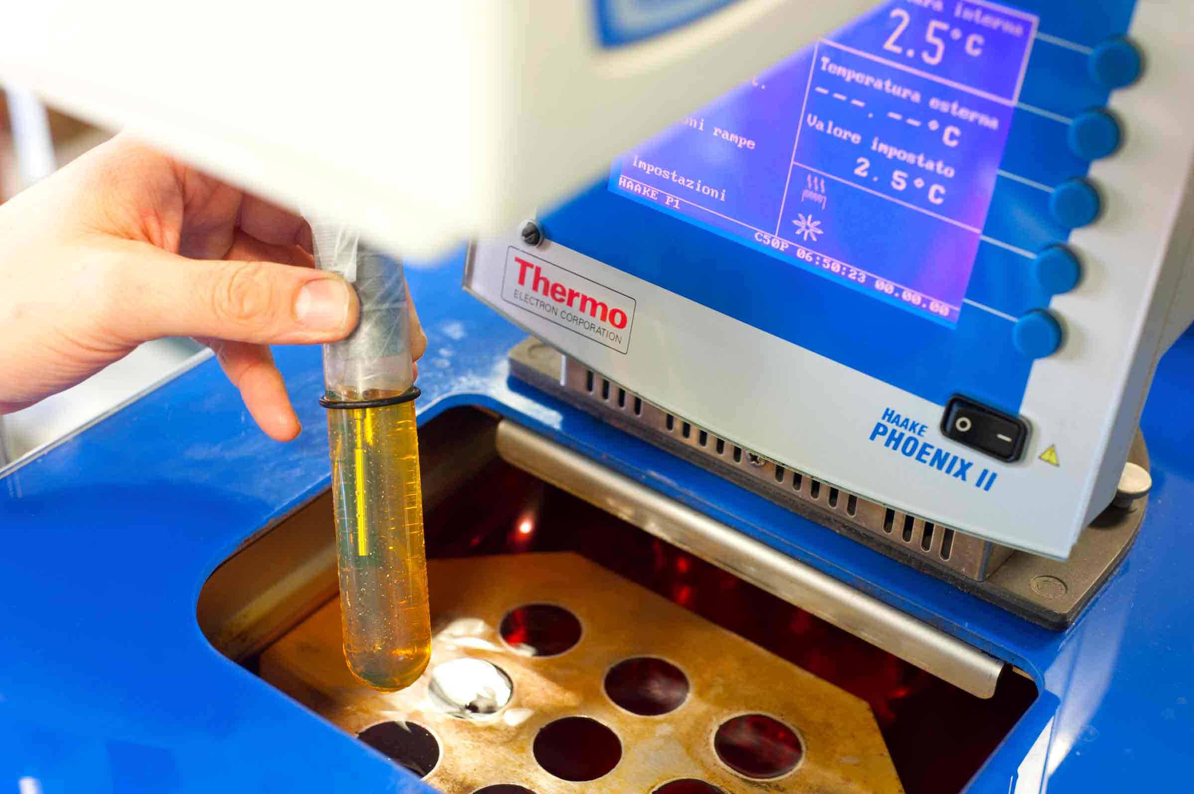The measure is made in a thermostatic bath at the temperature of: 40°C / 104°F – ISO 3448 Class (for hydraulic and reduction units’ oils) 100°C / 212°F – SAE J300 / J306 classifications (for engine and transmission oils)
