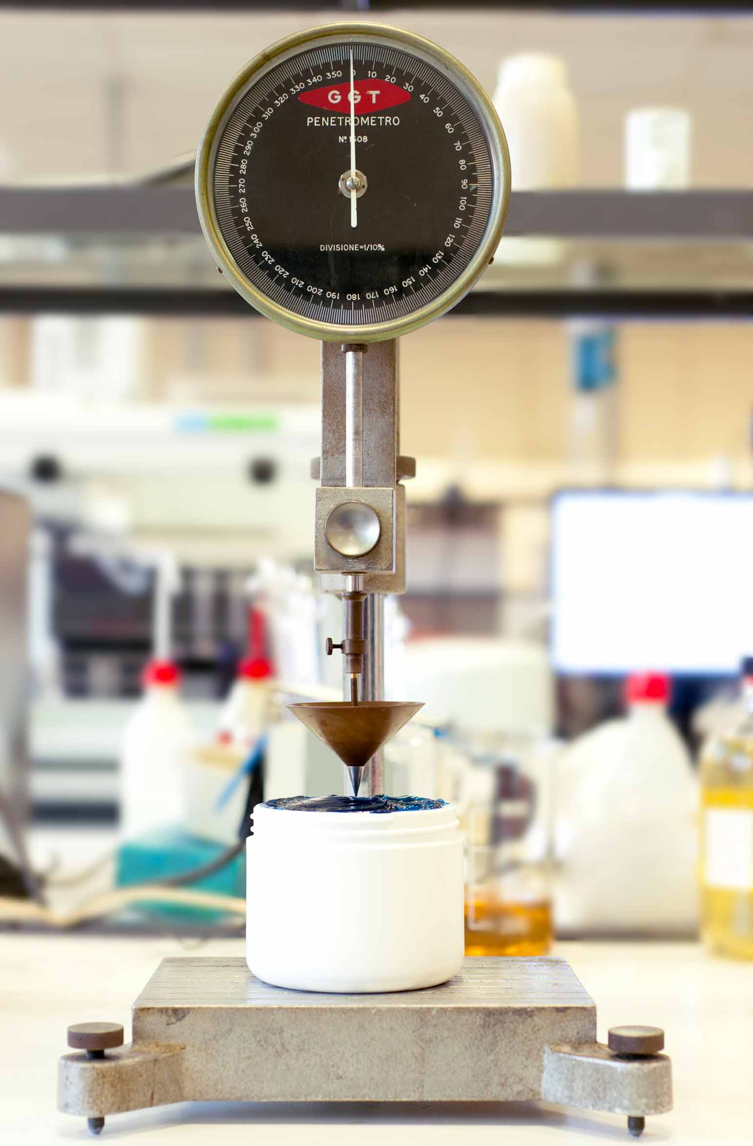The consistency of the grease is measured by penetration of a standard cone into the grease. This parameter identifies NLGI Class consistency.