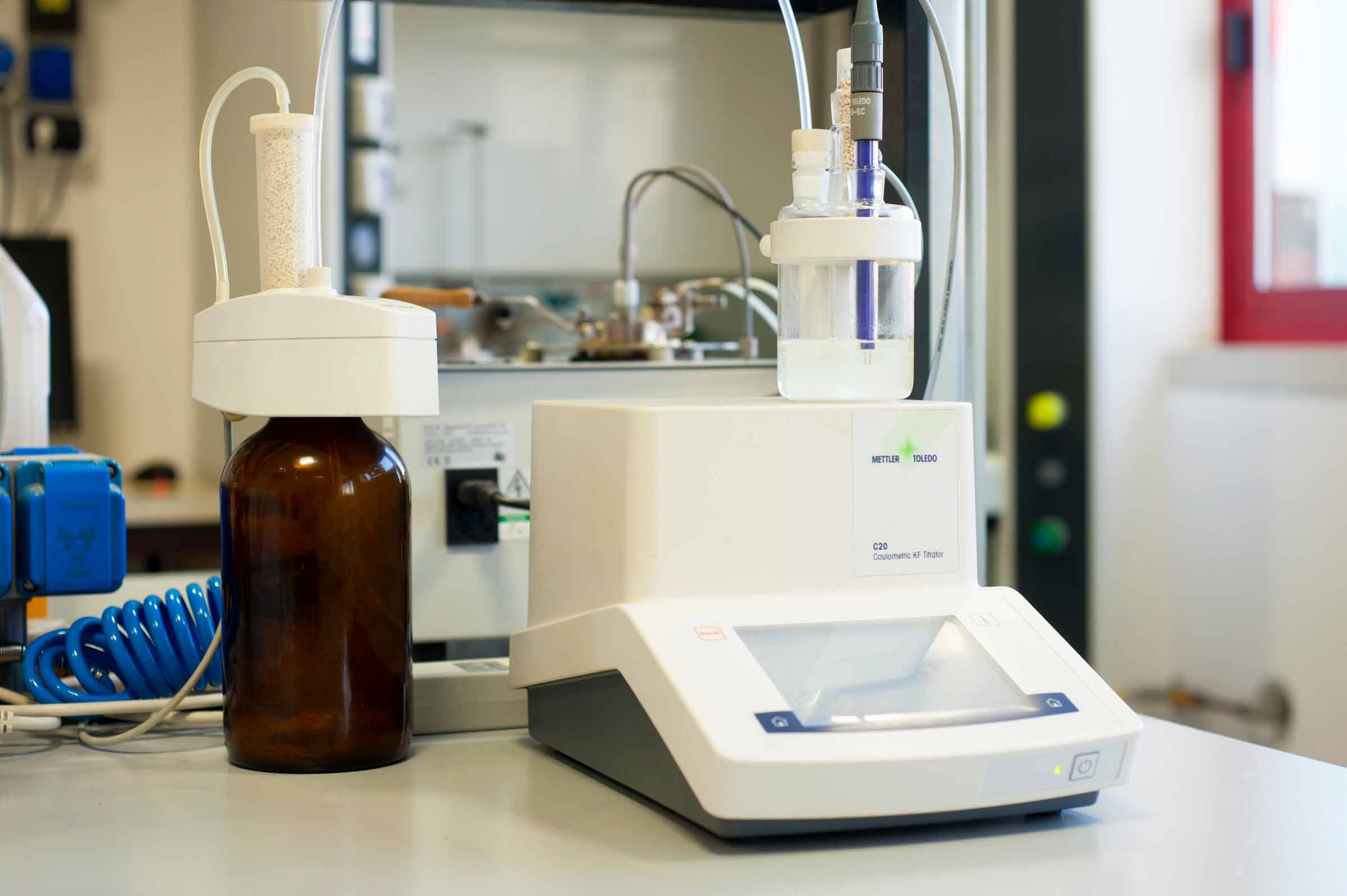 This equipment determines water content in hydrocarbon-based fluids using a iodomoetric titration by coulometric method.