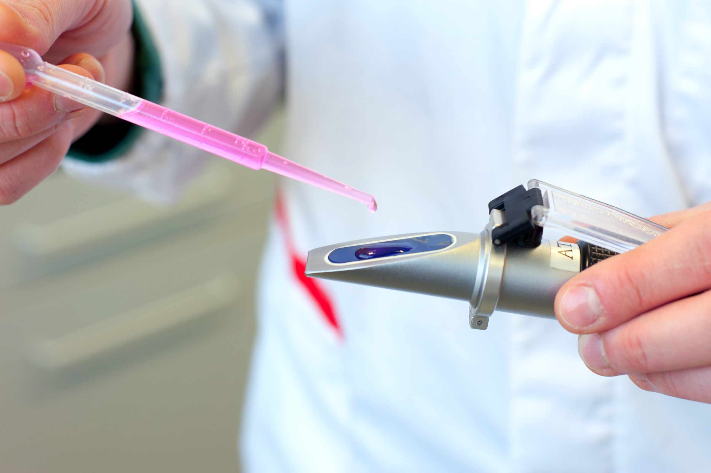 The intentional addition of hydrochloric acid measures the capability to neutralize the acidity formed by decomposition of coolant components. Glycol content is measured thanks to a specific refractive index. This parameter gives information about freezing point of the water/glycol mix.