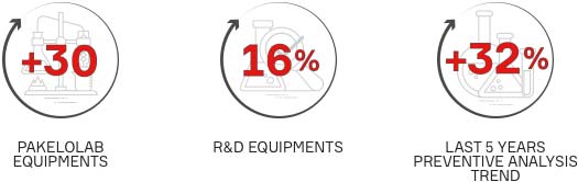 PakeloLab is one of the top lubricant-specific laboratories in Europe. Its main activities are diagnostics on exhausted oils and lubricant quality tests. The laboratory is managed by Pakelo Global, a society of the Group that has been harvesting a rich data bank since 1970s, which is the reference tool for diagnosis interpretation.